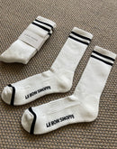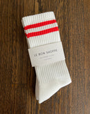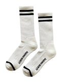 Due to popular demand we created the Boyfriend Socks in extended sizing, which is unisex and men-friendly! They maintain the same design as our bestseller and signature style, Boyfriend Socks, with a slightly bigger foot and longer leg. Their classic, vintage-sporty vibe can be styled with all of any daytime look or worn as the perfect lounge sock to keep your feet comfy at all times.