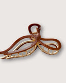Festive Collection. The perfect stocking stuffer! Eco Conscious, Biodegradable Acetate and Gold Alloy make up this gorgeous festive Bow Claw Clip. Approximately 12cm Size All Clips come with retail tags or on hang cards; ready to display in your shop. Durable and well made, will hold medium to thick hair easily. Claw Clips are the hottest current trending hair accessories and are highly popular amongst shoppers due to their versatility with any hair type.