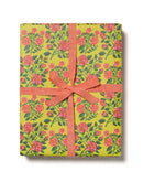3 sheets rolled and sealed together in cellophane (without a cardboard core). Illustrated by Krista Perry. Printed by Red Cap Cards in Los Angeles, California, USA, on recycled paper.