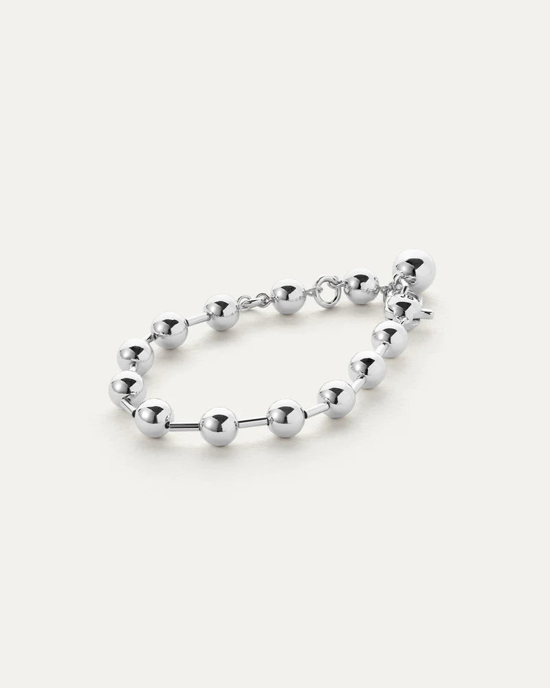 Luminous metal spheres that make for a modern take on a beaded bracelet. This design includes three non-removable extender rings, making it easy to wear at three different lengths. Finished in high-polish silver.