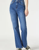 Emphasis is on the flare with Los Angeles, our high-rise wide leg fit with a 90s silhouette. Slim through the hip and thigh and ending in an exaggerated flare, this jean flatters from every angle.