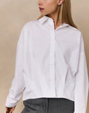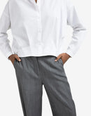 This stylish poplin blouse is crafted from smooth cotton and features an oversized fit. Designed with long sleeves, a classic collar and button-down closure. The subtle pleat details at the front create a refined silhouette. Perfect for both casual and business styling.
