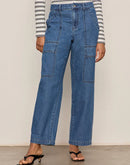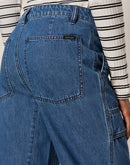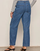 Embrace effortless style with these Boyfriend Utility Pants, featuring a relaxed barrel leg silhouette and practical cargo details. Crafted from 100% soft blue cotton, this lightweight pair offers a high-rise fit with convenient front and back pockets, side seaming, and a classic zipper front. The non-stretch fabric provides structure while maintaining comfort for everyday wear. Perfect for casual outings or weekend adventures. Machine wash cold and tumble dry low for easy care.