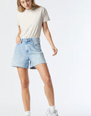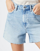 A retro-looking fit, Millie is our relaxed short with plenty of room and a longer inseam, frayed raw hem, and a high rise that always helps you feel comfortably held-in.
