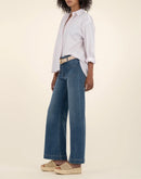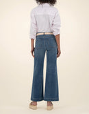 Upgrade your wardrobe with these chic high rise wide leg jeans in a versatile medium wash color. Featuring stylish patch pockets and a clean hem, they offer a flattering fit and modern silhouette. Perfect for any occasion.
