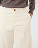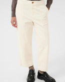 These relaxed trousers in a light cotton blend feature a cropped length and a loose fit for all-day comfort. Visible seams and front patch pockets highlight the simple, functional design. Perfect paired with a T-shirt and flat shoes for everyday wear.