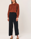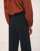 Dress pants with a mid-rise waist and internal elastic . These have a hidden side zipper closure and are fitted with a straight leg, perfect for a comfortable yet sophisticated look.