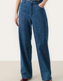 These soft denim jeans feature a subtle all-over pattern and a flattering straight-leg cut with a slight flare. Classic details like five pockets and belt loops make them a versatile wardrobe piece. Style them with a shirt, knit or T-shirt depending on the occasion.