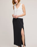 The Venice skirt is made of super soft EcoVero rayon jersey. Features include an elasticated waistband and front side slit. Complete the look with the Donna tank.