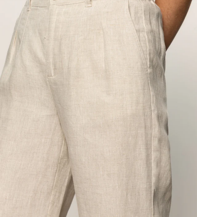 Lightweight bermuda shorts in 100% linen in a natural sand tone. Designed with a zip closure, slanted side pockets, belt loops and front pleats. A relaxed silhouette with classic details – perfect for warm days.