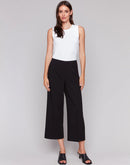 Embrace a sophisticated and relaxed look with these black cropped wide leg pants. Fashioned in a timeless design, they feature a flattering waist and a versatile cropped length. The fabric's slight stretch allows for ease of movement, making these pants a delightful summer companion for casual and formal outfits.