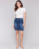 Embrace a casual chic vibe with this indigo blue skort that redefines comfort and style. The frayed hem adds an effortlessly cool vibe, while the stretch fabric provides a flattering fit. A versatile white piece for any occasion, perfect for those summer sunny days when you want to look effortlessly stylish.