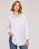 The Callahan button-down shirt is made of a cotton poplin fabric with a light crinkle texture. Features include a patch pocket and side slits.