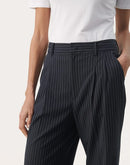 These suit trousers combine sharp tailoring with modern style. Made from high-quality fabric, they offer a smooth and comfortable feel, while the straight leg profile ensures a flattering silhouette. They are equipped with practical details like belt loops, hidden closure, and discreet side pockets, adding functionality without compromising on style.