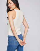 The Astor tank is made of a yarn that has the perfect amount of stretch for a contour smoothing fit. It features an Ottoman stitch pattern that provides a dimensional rib texture. The flattering v-neckline can be easily dressed up or down.