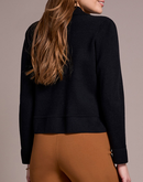 A seamless blend of laid back comfort and structured shape, this collared sweater cardigan puts forth a sophisticated style that's easy to wear. It features a long-sleeve design, faux horn button closures in the front, and double knit jacquard fabric that's soft and smooth.