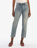 - Whiskering and fading add dynamic dimension to the vintage blue wash of comfy cropped boyfriend jeans cut in a slouchy silhouette.
