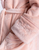 - Cozy fleece wrap robe with allover pink floral print, roomy sleeves, front patch pockets, and a self-tie belt.