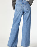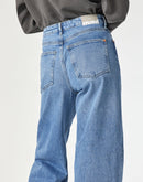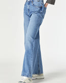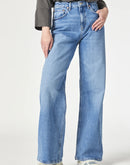 Our newest wide-leg jeans have a comfortable mid-rise waist and fit slim through the hip. Loose-fitting through the leg, they gradually widen to the hem. This fit plays well with any footwear.