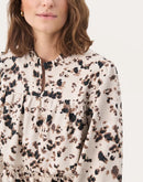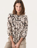 his feminine blouse with a beautiful natural leopard is perfect for both everyday wear and special occasions. Featuring a round neckline, subtle frills, and a relaxed fit, it offers a stylish and comfortable look. Pair it with jeans or a skirt for a complete outfit.