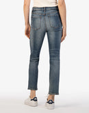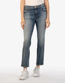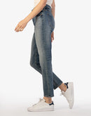 - Faded for a lived-in edge, these stretchy jeans feature slim-cut straight legs, ankle-grazing hems and Fab Ab front pockets that shape and smooth.