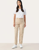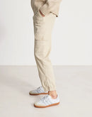 These cargo-inspired trousers in soft beige are both practical and stylish. With large side pockets and elasticated ankles, they combine comfort and functionality. Perfect for everyday wear and leisure – pair with a T-shirt for a casual look.