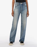 - The perfect mix of casual and sophisticated, these high-rise jeans flaunt full-length wide legs that are creased for trouser-inspired style.