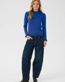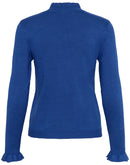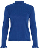 This women's pullover sweater offers a regular fit with a subtle high neckline and decorative knit detailing on the upper chest. The long sleeves and soft material ensure all-day comfort, perfect for versatile everyday wear.