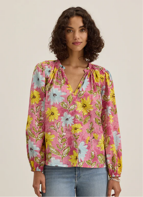 Indulge in elegance with our Velvet Marysia Garden Print Top in Posy. A stunning v-neckline and cinched cuff detail create a flattering fit, while the beautiful and bright floral print adds a touch of sophistication. You'll s...