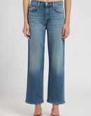 Straight through the hip and thigh, this cropped denim delivers a clean stovepipe silhouette with modern edge. Mid-weight fabric offers broken-in softness that feels like a beloved favorite from day one. Zip fly with button closure, clean back pocket, and contrast stitching complete the effortless design. A versatile staple that transitions seamlessly from casual to refined.