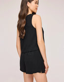 The Amalfi short is made of a linen blend fabric for an effortless look and feel. Features include a faux fly detail, slash pockets, and back patch pocket. Complete the look with the River tank or Portia button-down.