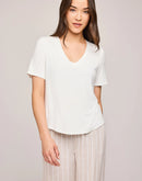 The Jamie t-shirt is made of super soft EcoVero rayon jersey. Features include a v-neckline and relaxed fit that is perfect for everyday wear.