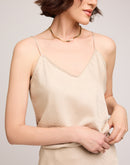 The Priscilla tank is made of a bias cut satin jacquard fabric. Features include adjustable straps and a scallop detail along the neckline. Complete the look with the Bonnie skirt.