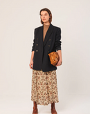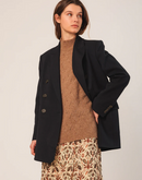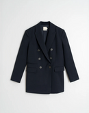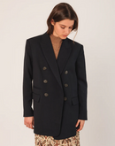 Classic style blazer in an oversize fit. It has a fitted shoulders and a lapel collar with a crossover front and buttoned closure.