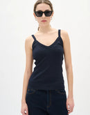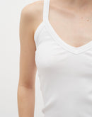 Ribbed tank top in soft, stretchy cotton. Designed with a front V-neckline, slim straps and a body-hugging fit. A feminine and comfortable style, perfect on its own or as a base layer.