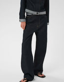 Embrace timeless denim style with these wide-leg jeans, designed for effortless sophistication. The high-rise silhouette and straight cut create a flattering, elongated line, while classic five-pocket construction ensures everyday functionality. Contrast waistband detailing and visible topstitching deliver subtle modern appeal without compromising the refined aesthetic. Crafted from a breathable cotton-blend fabric with just enough stretch for comfort, these jeans transition seamlessly from casual outings to elevated weekend looks.