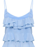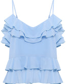 Top with narrow straps and ruffle detailing at the front and back. Features a V-neckline and a light, relaxed fit. Made from a soft, woven fabric with elegant texture – ideal for both everyday wear and special occasions.
