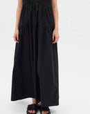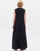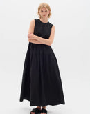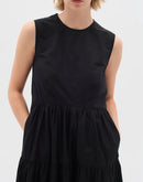 Sleeveless dress in black poplin with a round neckline and visible pleats in the skirt for added volume and a light silhouette. Designed with side pockets, a relaxed fit and button closure at the neck. A feminine summer dress in crisp cotton.