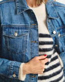 Classic denim jacket in a timeless design with signature buttons and flap chest pockets. Made from sturdy denim, it features a versatile fit, making it perfect as a transitional jacket or for casual everyday outfits.