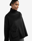 This stylish poncho is made from a soft fabric and designed with a comfortable, relaxed fit. The high turtleneck and ribbed sleeves provide extra warmth, while the large flap pocket adds a contemporary touch. Perfect for layering over a blouse or sweater to create an elegant look on colder days. The model is 176 cm and wears size 2.