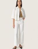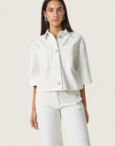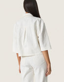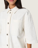 100% cotton, with textured fabric surface, button closure, elbow length sleeve.