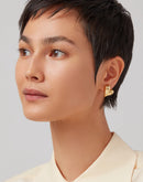 The shortcut to an effortless asymmetrical look, one of these small, heart-shaped button earrings is flipped upside down. Finished in high-polish silver.