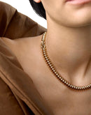 A gorgeously fluid choker that boasts a ribbed texture through a unique caterpillar construction. A removable short chain extender allows you to find your preferred fit. Vintage-inspired foldover closure, finished in high-polish gold.