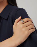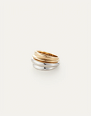 A pair of thin rings boasting deep contours. These are water-resistant, making them the perfect addition to your jewelry box. Finished in high-polish silver and 14k gold.
