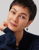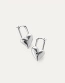 A luminous heart is integrated into a padlock shape. These earrings open and close with a hinge, so you’ll never have to search for an earring back again. To wear, lift post and gently push into opening. Finished in high-polish silver.