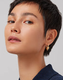 A small heart is integrated into a padlock design. These huggies open and close with a hinge, so you’ll never have to search for an earring back again. To wear, lift post and gently push into opening. Finished in high-polish silver.