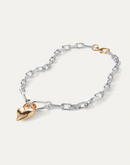 A removable heart is hooked onto crisp, faceted links. The chain can be split in half and used as a bag charm or keychain. Finished in high-polish silver.