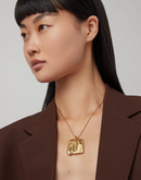 Mirroring a sand dune shaped by natural winds, this large organic square pendant glides along a gold chain. This design includes a shortening ring, making it easy to adjust and wear at 18" or 20". Finished in high-polish 14k gold.