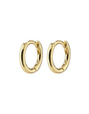 Keep it simple - and keep it cute. These gold-plated huggie hoops are a timeless classic that you can enjoy again and again. A simple, classic design that will always be in style. The earrings' slightly chunky silhouette and easy-to-use click lock make them a sure winner when you need to style your everyday outfit. Recycled item that is made from  99% recycled material and has a smart click lock. Measures 10 mm in diameter.