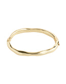 Glow your way! Gold-plated or silver-plated LIGHT bangle from Pilgrim. A shiny piece with a lovely quality feel and a stylish Scandinavian design. The wavy shapes of the bangle give a unique finishing touch that can be styled as a single eye-catching piece for your everyday outfits or in a stacked look with multiple bracelets for your favourite party dresses. Opens easily with a click clasp and is made from 99% recycled material.